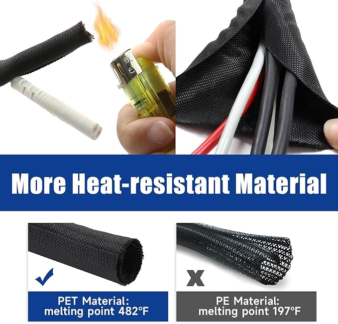 • Easy to use: the cable sleeve organizer is split and easy to load wires; What's more, wire can come out conveniently because of its split design; Braided cable sleeve will close on itself and suitably wire wrap