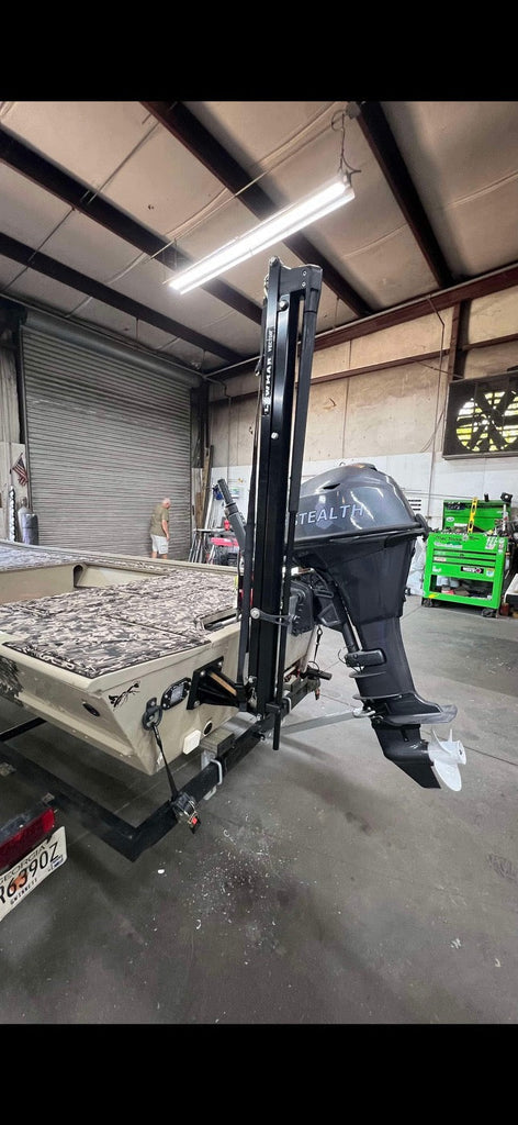 For use in up to 8' of Water, Manual Deployed/Retraction, 18lbs, Four Bar Articulating Arm, for Powerboats up to 22' or 3000lbs, Black
