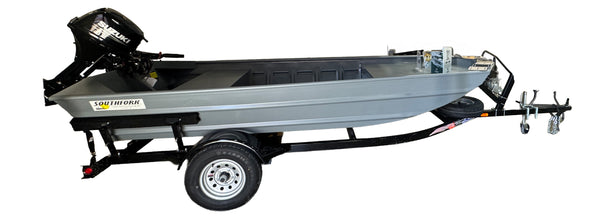 Southfork builds 112 different models ranging from 12' to 26' in length and with bottom widths ranging from 42" to 72". Models include: Flat Bottom, V Bottom, Cab Boats, Fan Tails, Work Boats, Surface Drive Mud Boats, V-F Flat Bottom, and Tunnel Hulls. Everything is welded on our boats, so no loose screws to worry about!