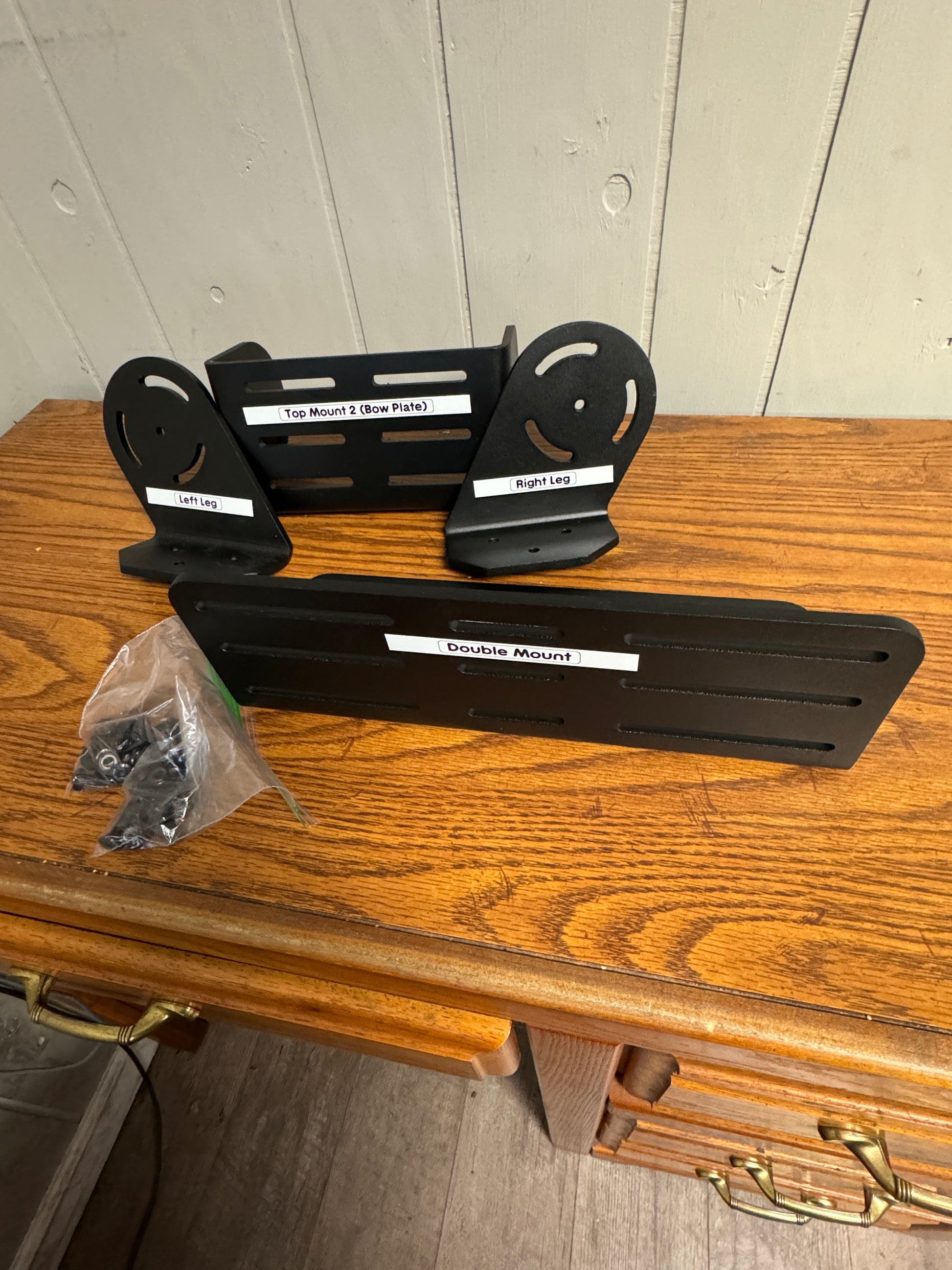 - Bow Plate Double includes right leg, left leg, bow plate mount, double mount and assembly hardware