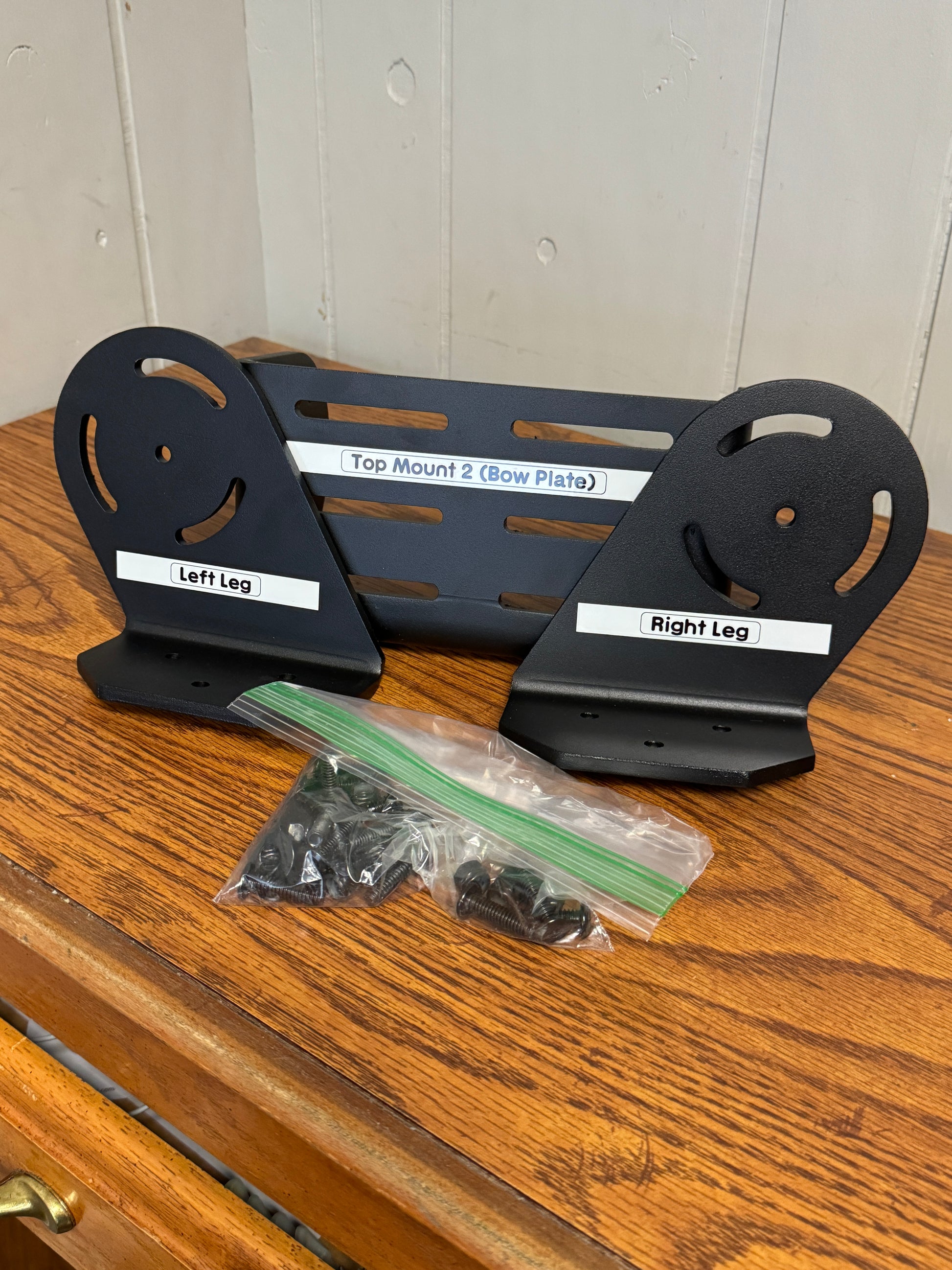 - Bow Plate Triple includes right leg, left leg, bow plate mount, triple mount and assembly hardware