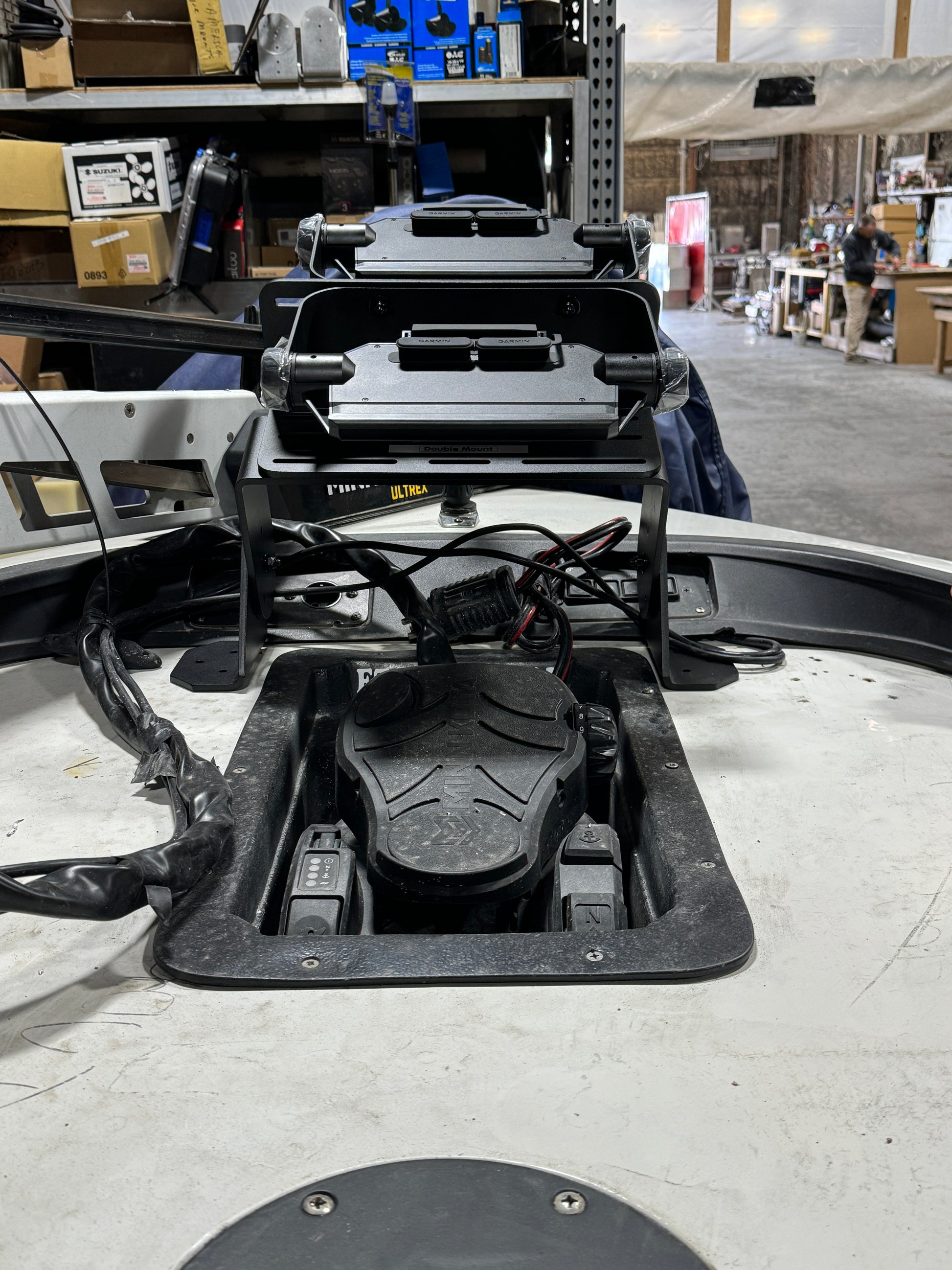 - The double mount and triple mount can be adjusted left and right when attaching it to the bow plate or over the pedal mount. This allows the mounting position to fit your graphs alongside the trolling motor and other bow equipment.